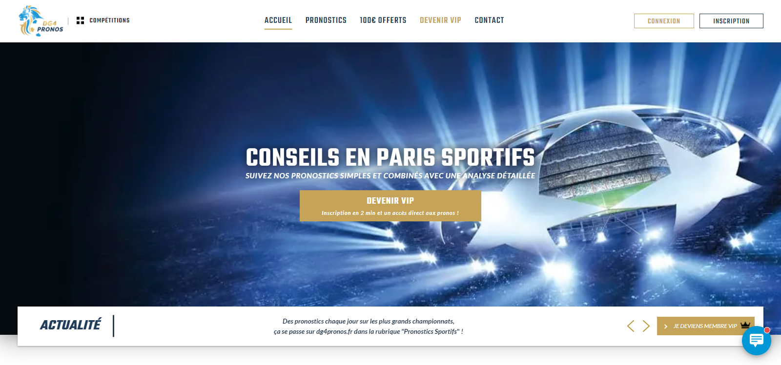 DG4 Pronos Website Activité : Pronostics sportifs, période : 07/2020 Rôle : Webdesigner - Intégrateur - Développeur Voir la réalisation keyboard_arrow_leftRetour